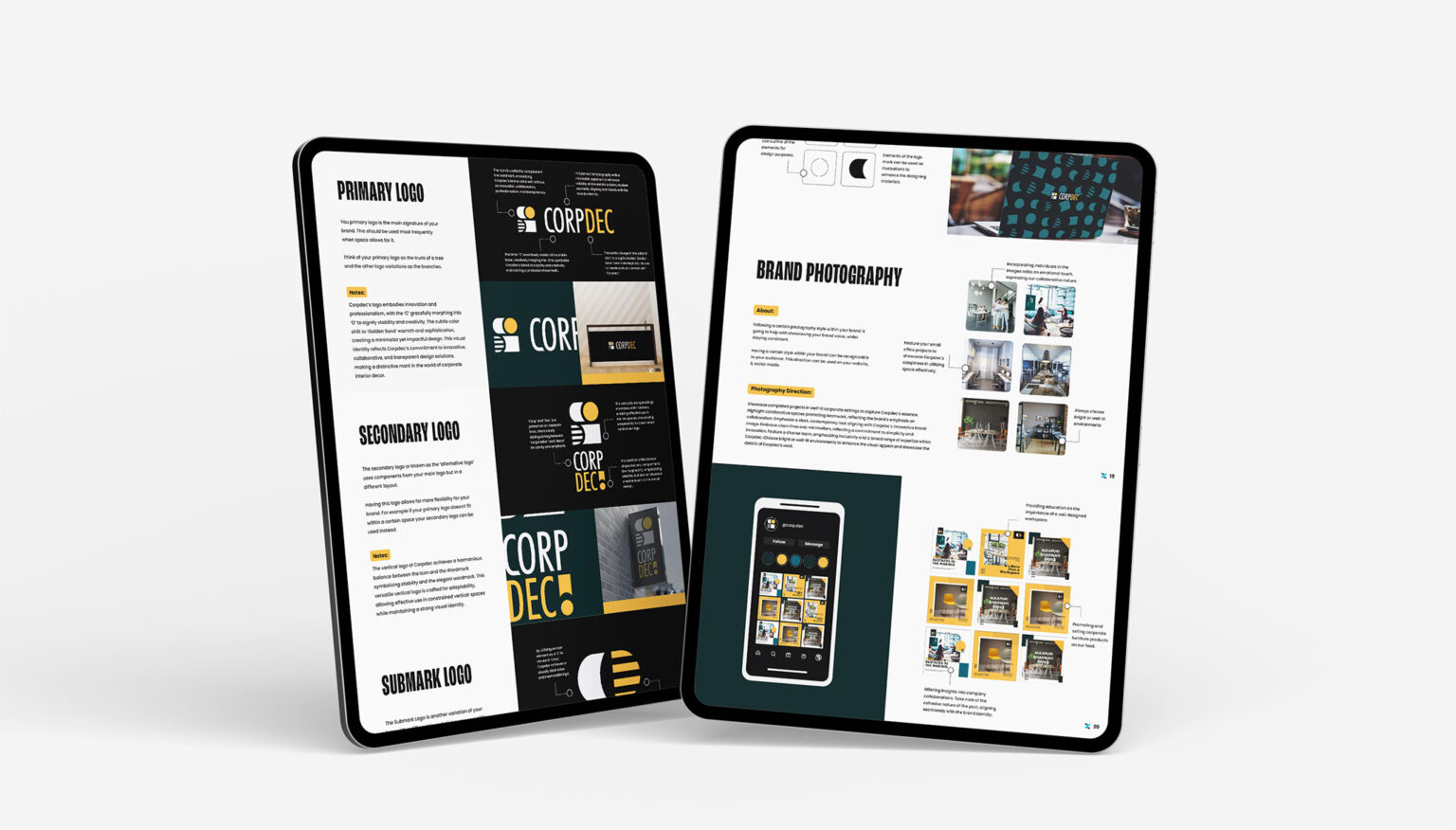 The resulting brand identity is a testament to Corpdec’s innovative spirit, professionalism, and collaborative approach. With a visually striking logo, cohesive color palette, and refined typography, the brand now stands out in the market, attracting attention and fostering trust with clients and partners alike. The branding work has not only elevated Corpdec’s brand presence but has also positioned them as a formidable force in the corporate interior design landscape, paving the way for future growth and success.